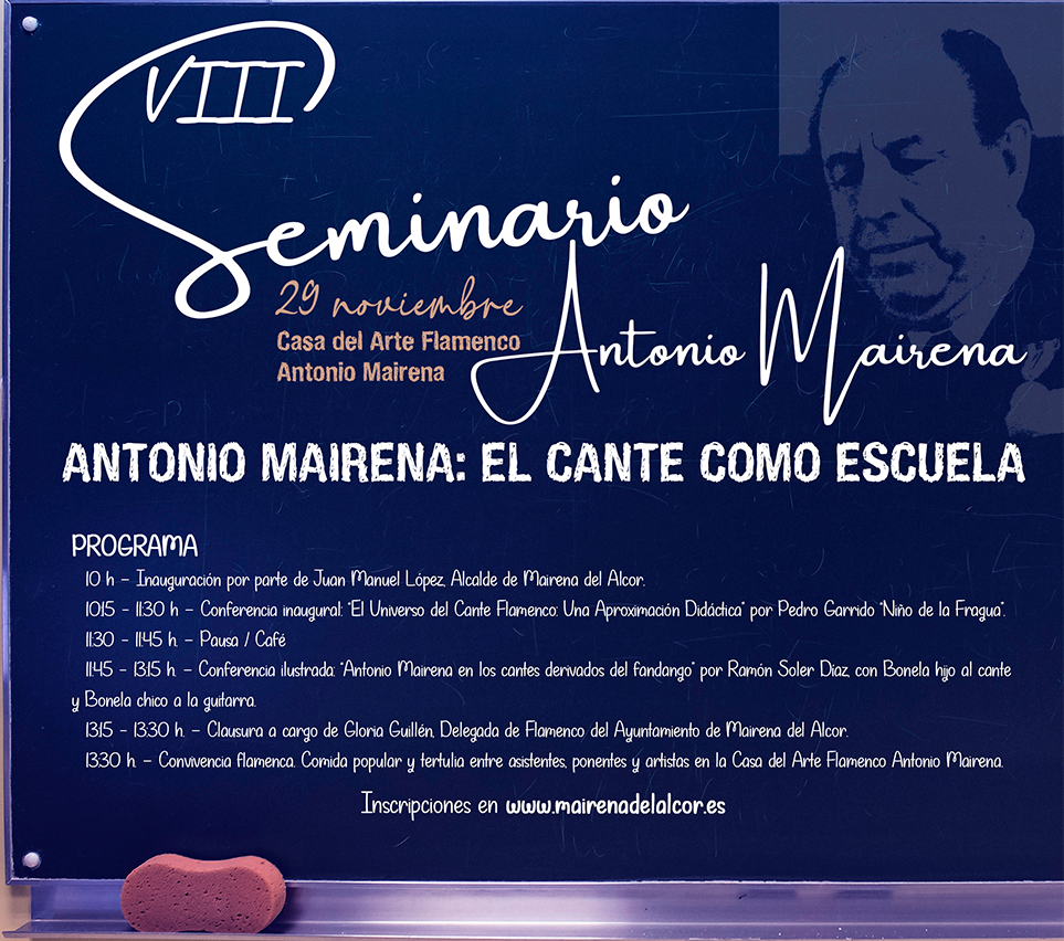 El Seminario Antonio Mairena alcanza su octava edición consolidado como un espacio de encuentro, reflexión y aprendizaje en torno a la figura del maestro mairenero y la esencia más profunda del cante jondo. En esta nueva cita, el seminario adquiere un carácter marcadamente didáctico, reafirmando la idea de que Antonio Mairena no solo fue un intérprete genial, sino también un maestro en el arte de transmitir —un referente que convirtió el cante en una verdadera escuela de conocimiento, sensibilidad y cultura popular.